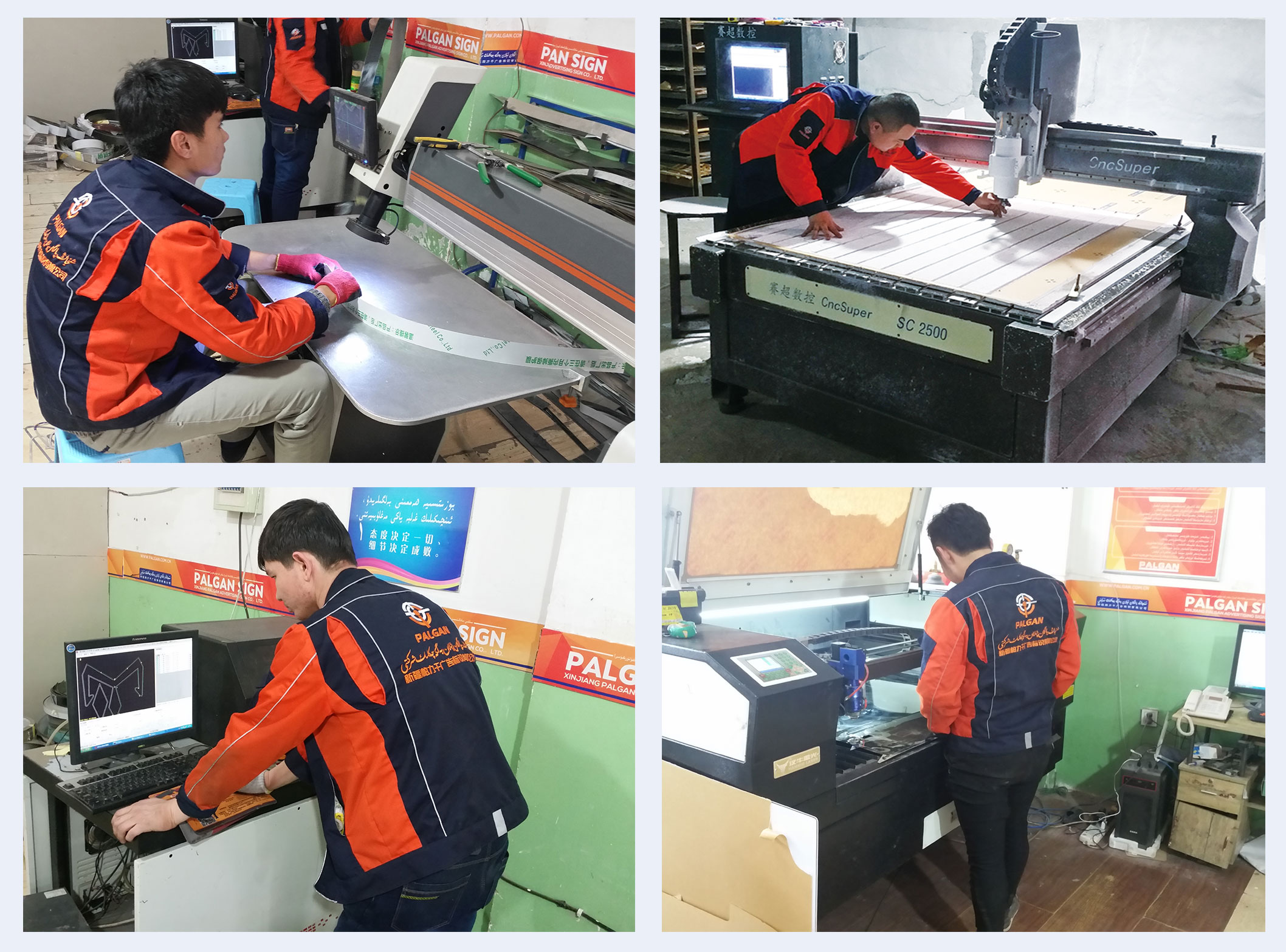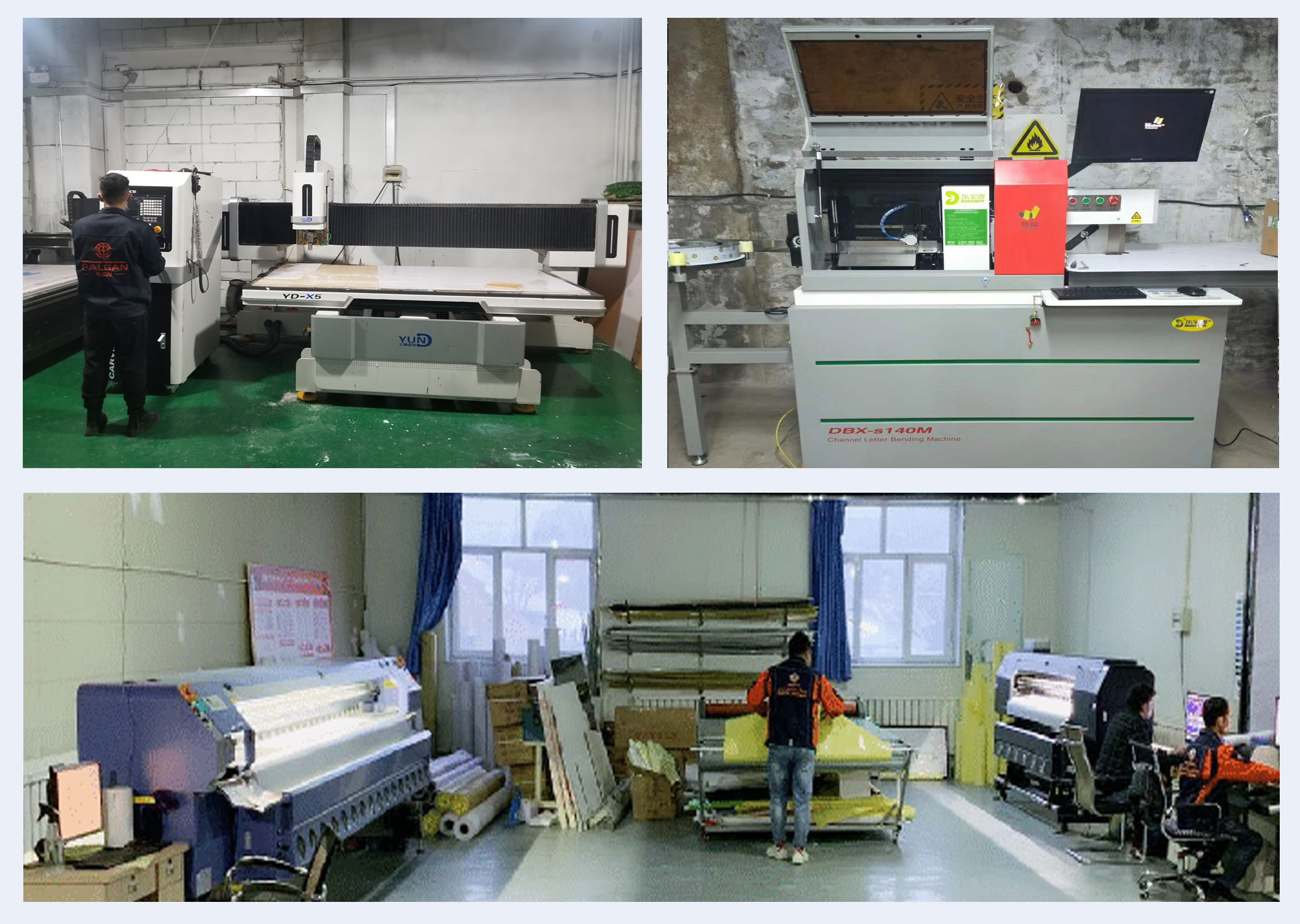 本公司拥有标准厂区、专业团队、先进技术、全套自动化设备:迷你字雕刻机、喷砂机、开槽机、围边机、焊字机、亚克力激光机、亚克力雕刻机、钻石抛光机等等一站式设备,并增加了大型户外喷绘机、写真机、 承接各类户内外喷绘、写真、车贴、X展架、门型架、布标等等,真正实现了精确高,速度快的企业方针,极大地缩短了制作时间。