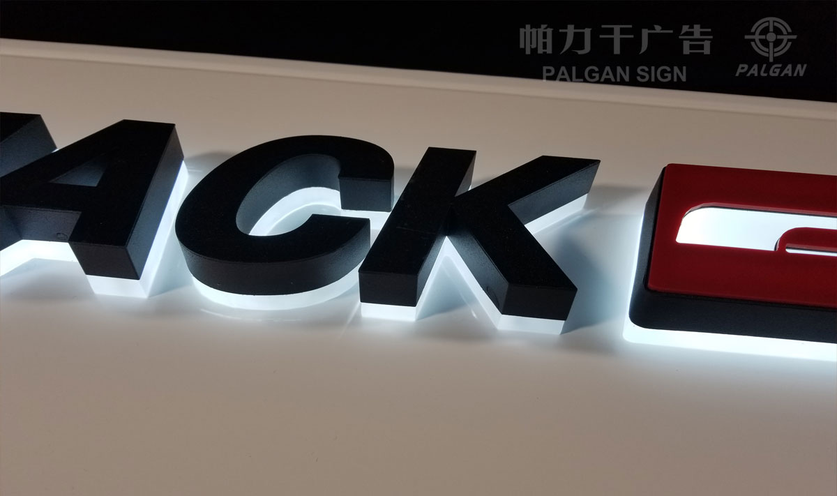 产品说明:背发光字,一般用于室内外形象墙,一般有两部分组成:一是高脚撑起和亚克力垫底,使字底离墙面有1-5CM的间距),二是LED灯光,装在字壳里面。从背后打光出来,所以光线柔和、亮度适中适用于室内标识。