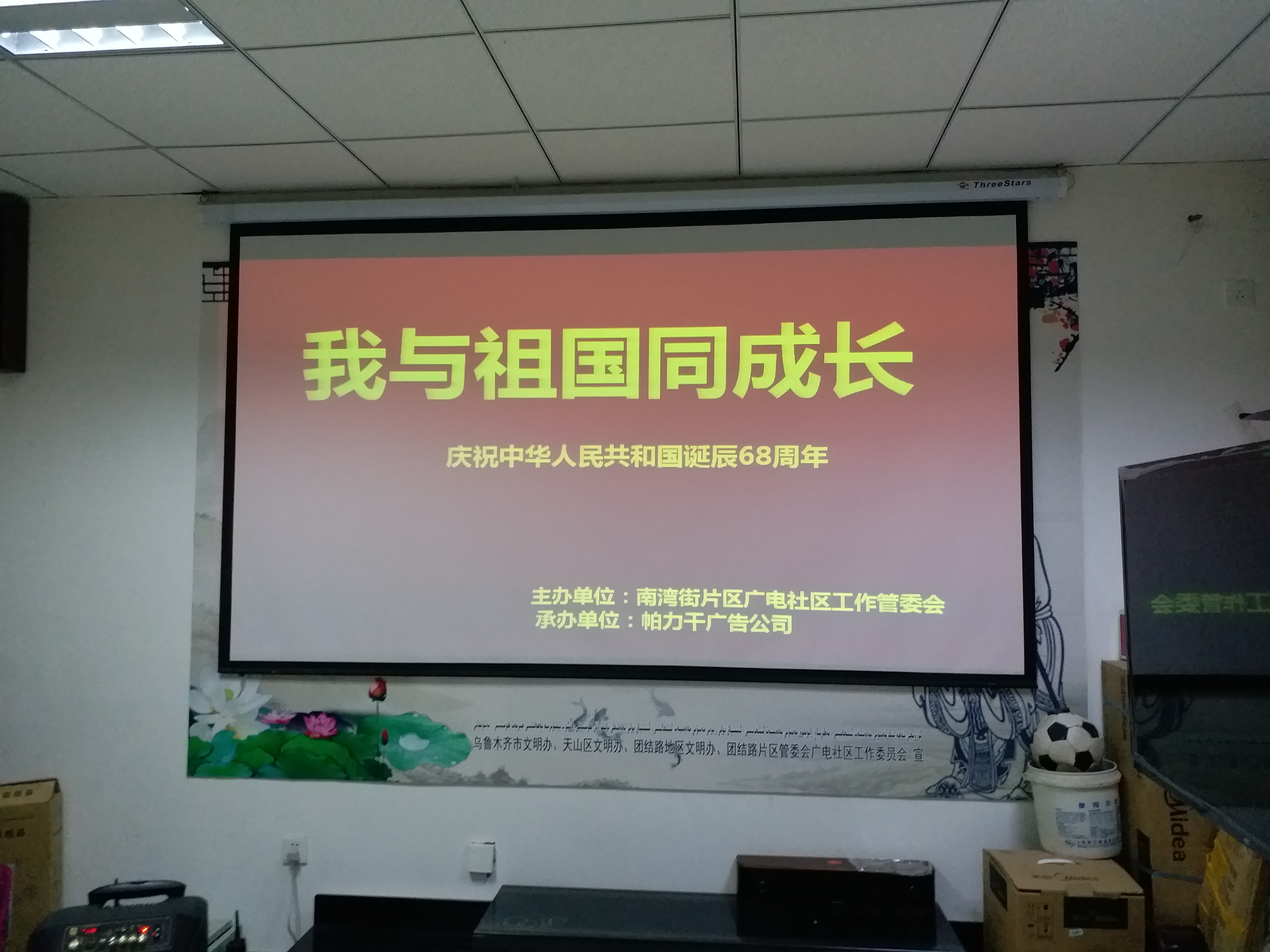 新疆帕力干广告标识有限公司与所在社区为庆祝新中国成立六十八周年,同时为向工作在一线的各位有关部门工作人员与各位领导表示忠心感谢而举办了这次活动。活动中社区领导与我公司领导都发表了有关民族团结的演讲,活动中大家一起合唱国歌、还请到5位与祖国在同一天生日不同名族的社区居民并举办了生日,大家在一起载歌载舞其乐融融。活动中乌鲁木齐电视台、新疆法制报与城市媒体栏目采访了社区与公司领导并录制了活动过程。