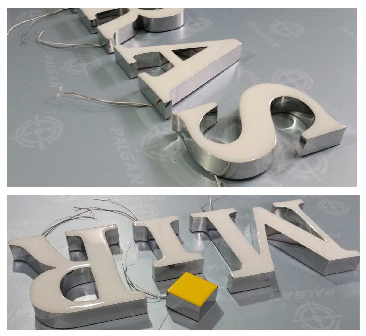 产品说明:树脂字采用镜面不锈钢边带和烤漆边带焊接成型、树脂层,外观清新亮丽,其内部安装LED灯带,字壳内部涂匀光层,打光无死角,高亮均匀不刺眼。